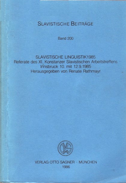 Bibl. Angabe: R. Rathmayr (Hg.): Slavistische Linguistik 1985. Referate des XI. Konstanzer Slavistischen Arbeitstreffens in Innsbruck 10.-12. September 1985 (= Slavistische Beiträge 200). München 1986.