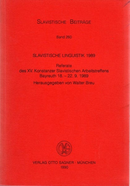 Bibl. Angabe: W. Breu (Hg.): Slavistische Linguistik 1989. Referate des XV. Konstanzer Slavistischen Arbeitstreffens Bayreuth, 18.-22.9. 1989 (= Slavistische Beiträge Bd. 260). München 1990.