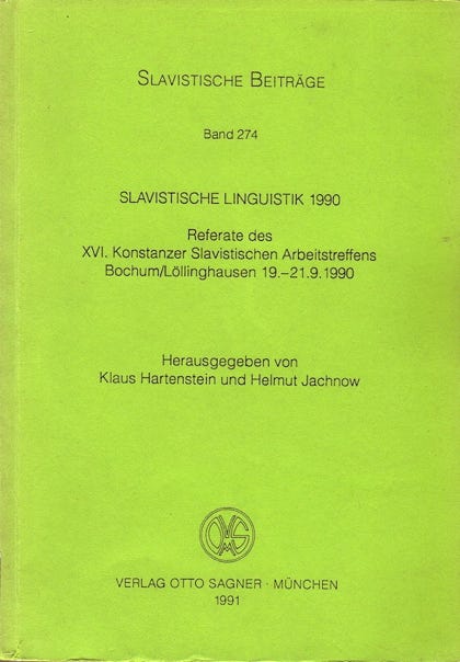 Bibl. Angabe: K. Hartenstein, H. Jachnow (Hg.): Slavistische Linguistik 1990. Referate des XVI. Konstanzer Slavistischen Arbeitstreffens Bochum/Löllinghausen, 19.-21.9. 1990 (= Slavistische Beiträge Bd. 274). München 1991. VOLLTEXT (pdf).