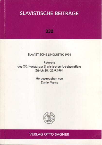 Bibl. Angabe: D. Weiss (Hg.): Slavistische Linguistik 1994. Referate ds XX. Konstanzer Slavistischen Arbeitstreffens Zürich 20.-22.9.1994 (= Slavistische Beiträge Bd. 332). München 1995.