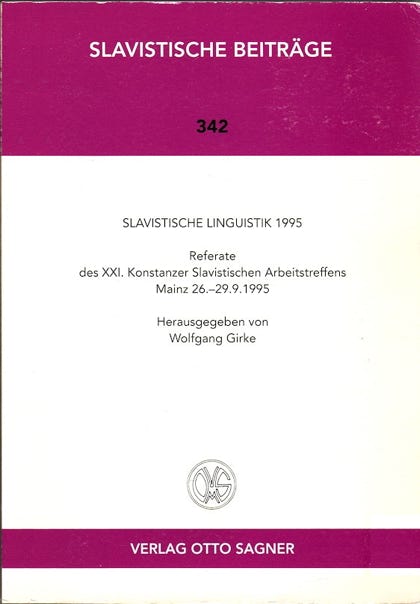 Bibl. Angabe: W. Girke (Hg.): Slavistische Linguistik 1995. Referate ds XXI. Konstanzer Slavistischen Arbeitstreffens Mainz 26.-29.9.1995 (= Slavistische Beiträge Bd. 342). München 1996.