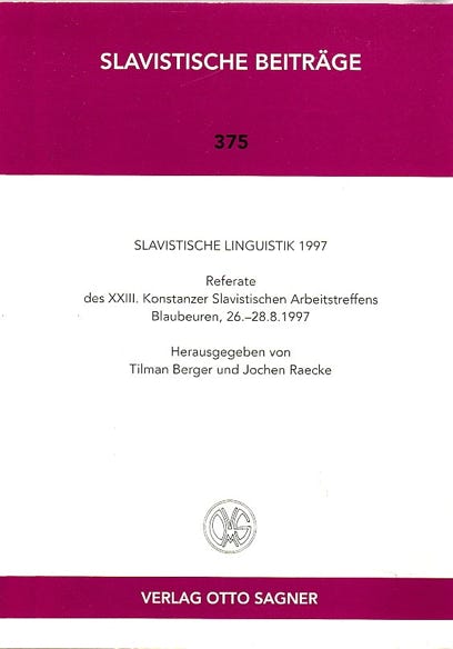 Bibl. Angabe: T. Berger, J. Raecke (Hgg.): Slavistische Linguistik 1997. Referate des XXIII. Konstanzer Slavistischen Arbeitstreffens, Blaubeuren, 26.-29.8.1997 (= Slavistische Beiträge 375). München 1998.