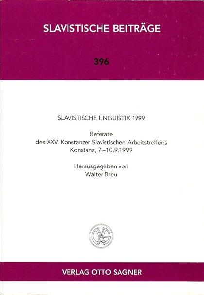 Bibl. Angabe: Walter Breu (Hg.): Slavistische Linguistik 1999. Referate des XXV. Konstanzer Slavistischen Arbeitstreffens Konstanz, 7.-10.9.1999 (= Slavistische Beiträge 396). München 2000.