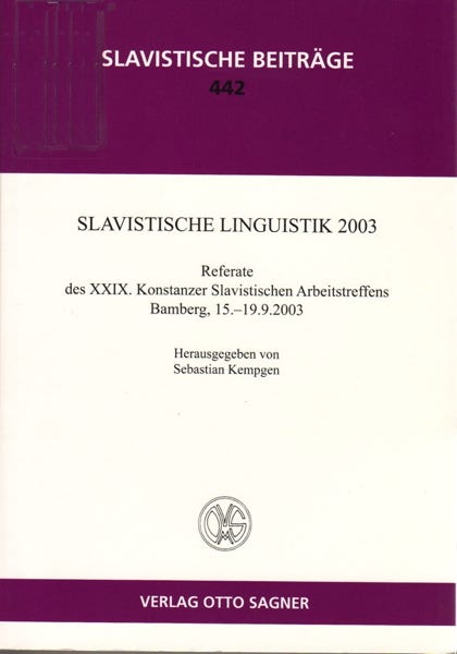 Bibl. Angabe: S. Kempgen (Hg.): Slavistische Linguistik 2003. Referate des XXIX. Konstanzer Slavistischen Arbeitstreffens Bamberg, 15.-19.9. 2003 (= Slavistische Beiträge 442). München 2004.