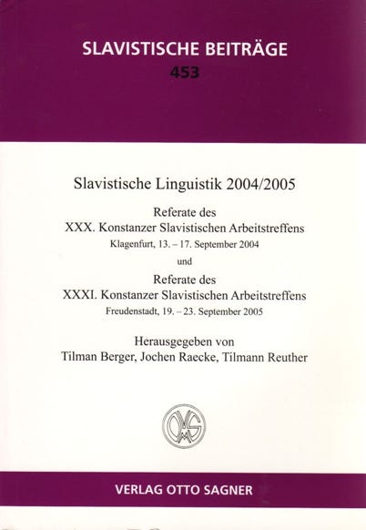Bibl. Angabe: T. Berger, J. Raecke, T. Reuther (Hgg.): Slavistische Linguistik 2004/05. Referate des XXX. Konstanzer Slavistischen Arbeitstreffens, Klagenfurt, 13.-17. September 2004, und Referate des XXXI. Konstanzer Slavistischen Arbeitstreffens, Freudenstadt, 19.-23. September 2005. München 2006.