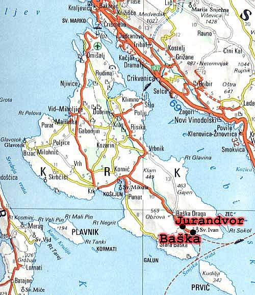 Die Insel Krk mit den Orten Baska und Jurandvor im Süden;Rechts: